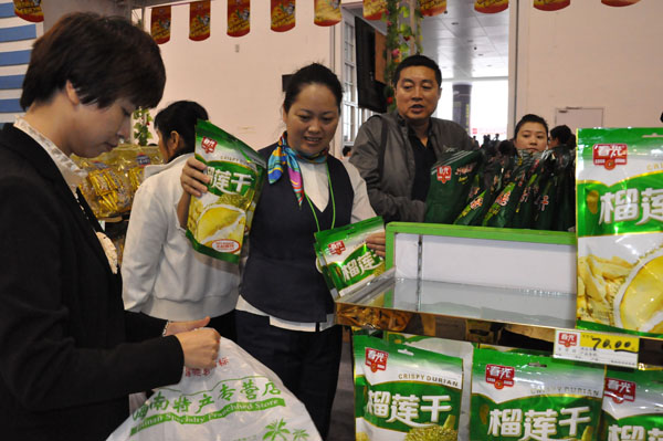 冬交會是農(nóng)產(chǎn)品交易、農(nóng)業(yè)合作以及海內(nèi)外客商相互交流的重要平臺。今年冬交會,依然在位于西海岸的海南國際會展中心舉行,距離市中心比較遠(yuǎn)。但相比去年,本次冬交會則是熱鬧非凡,前來參加冬交會的人絡(luò)繹不絕,除全國各大批發(fā)市場老總、采購商和運(yùn)銷商外,還有俄羅斯、印尼、新加坡、臺灣、香港等多個國家及國內(nèi)其他地區(qū)的客商和游客,??诒镜氐氖忻瘢约叭「魇锌h趕來的農(nóng)民。春光食品的展位前四面八方的客人每天都川流不息,其中很多都是外地的客商,他們紛紛表示:既然來了展會,又豈能錯過海南第一手信——春光。