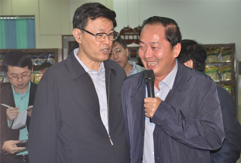 11月28日上午,冒著寒綿冬雨,踩著泥濘大地,省長蔣定之帶領(lǐng)參加全省品牌農(nóng)業(yè)發(fā)展推進(jìn)大會(huì)的代表考察了我司文昌廠區(qū),公司黃春光董事長等相關(guān)領(lǐng)導(dǎo)陪同介紹。
