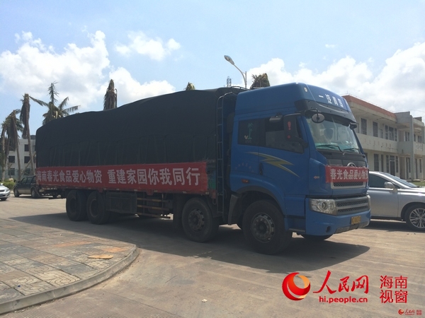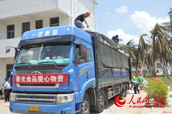 人民網(wǎng)海南視窗文昌7月23日電(記者毛雷 實(shí)習(xí)生喻晨)超強(qiáng)臺(tái)風(fēng)“威馬遜”登陸海南第5日,人民網(wǎng)海南視窗聯(lián)合海南春光食品前往受災(zāi)最為嚴(yán)重的文昌市翁田鎮(zhèn),為災(zāi)區(qū)送去急需的14萬(wàn)平方米防水布料。